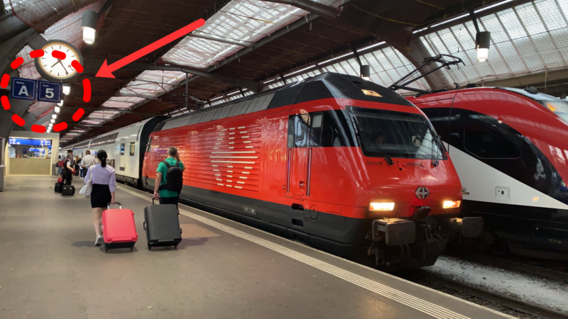 スイスの駅舎には、各ホームのプラットホーム番号が