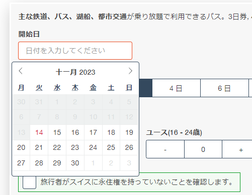 例えば、12月1日スタートの3日分のスイストラベルパスであれば、