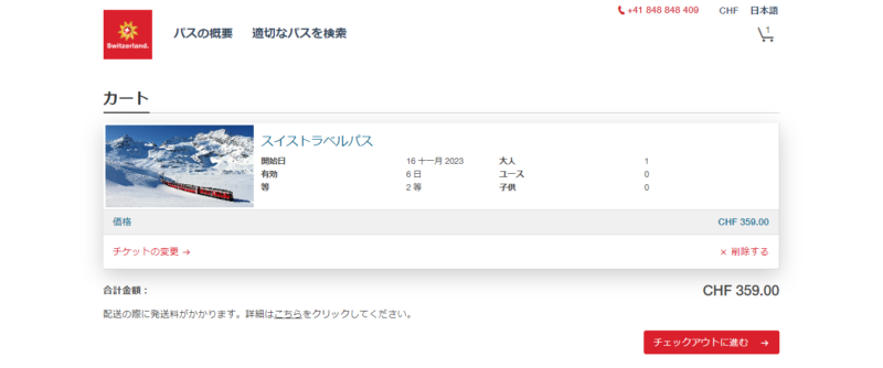 『359スイスフラン』かかります。