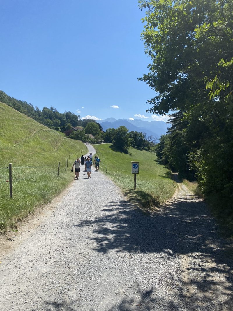 最初のうちは、スイスの住宅街の小径を登っていきます。