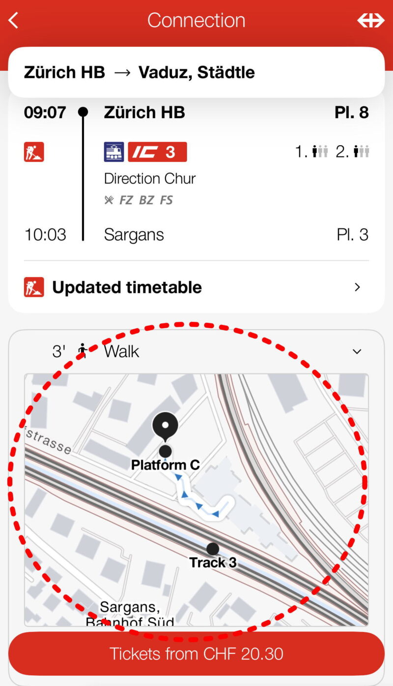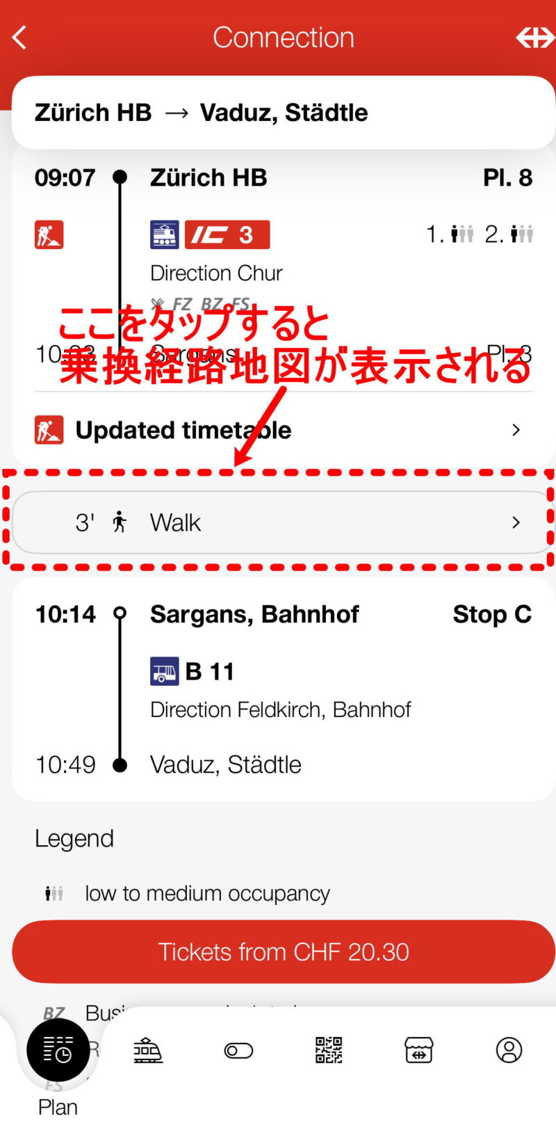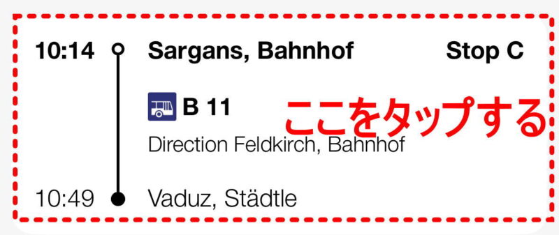 先ほどご紹介したSBB mobile のバス区間をタップすると