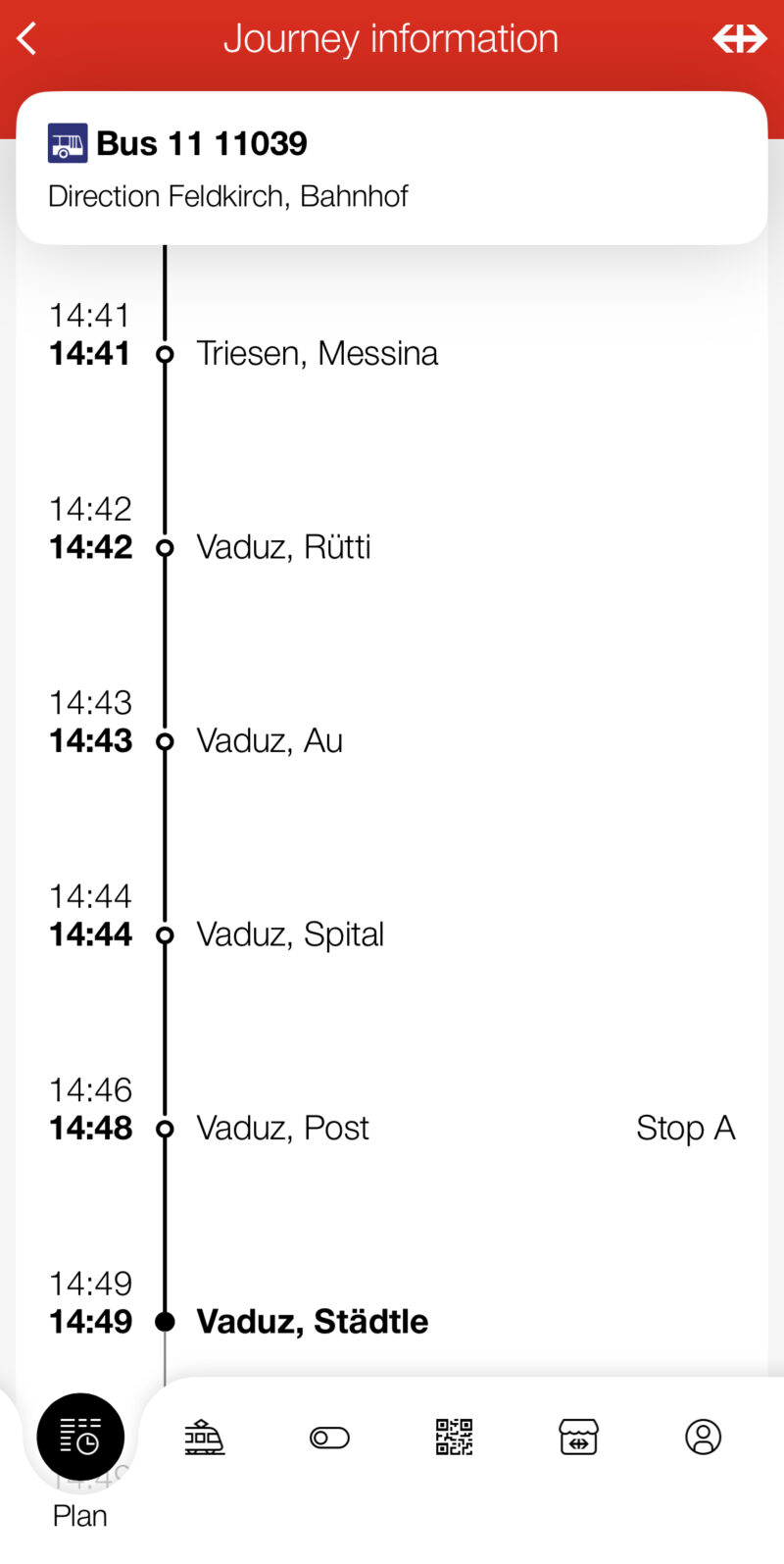 ザルガンス駅(Sargans HB) ⇒ ファドゥーツシュテットレ(Vaduz Städtle)停留所