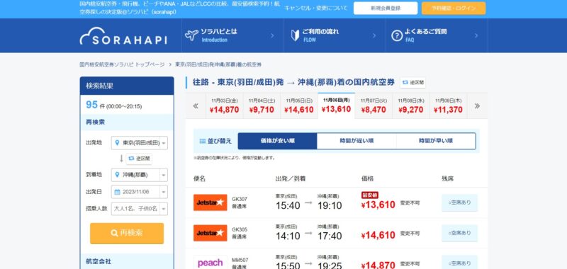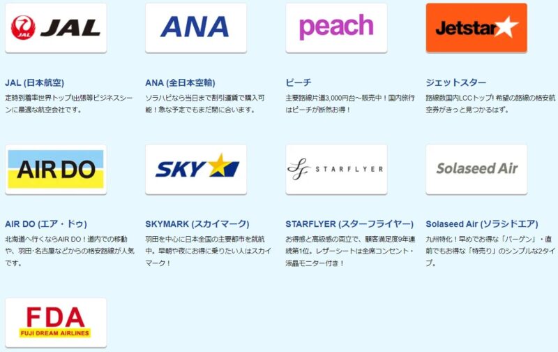国内線で最安値を追求するのであれば、ソラハピは最高のツールと言えるでしょう。