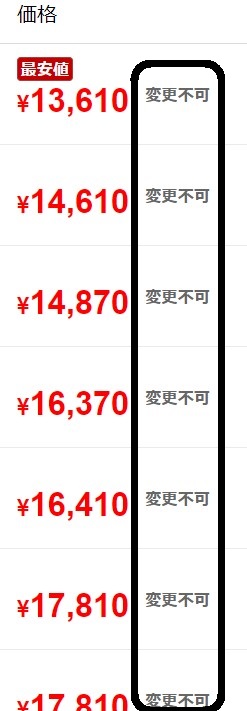 また、価格の安い順で表示されていますが、