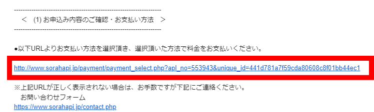 メールの中ほどに支払い案内のURLがあるのでここをクリックします。