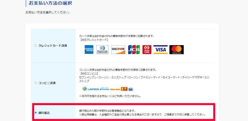 同じページの最下部に決済方法の選択がありますので