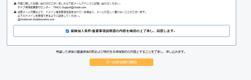 *キャンセル保険が必要のない場合はこのチェック欄はでてきません。