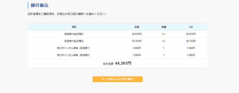 そして「次へ(お振込み口座確認)」ボタンをクリックします。