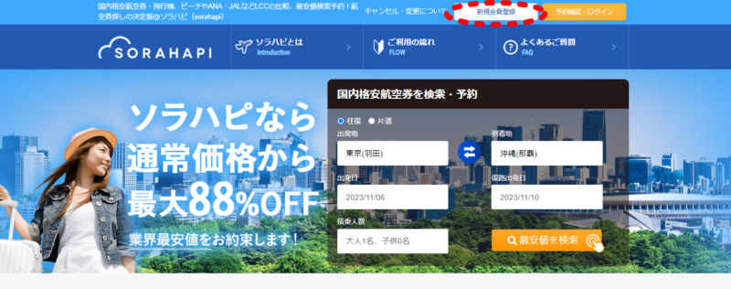 つまり、『ソラハピ』は、国内航空券予約に特化した格安予約サイトです。