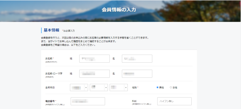 3. すると、会員情報入力画面に変わるので、個人情報を入力します。
