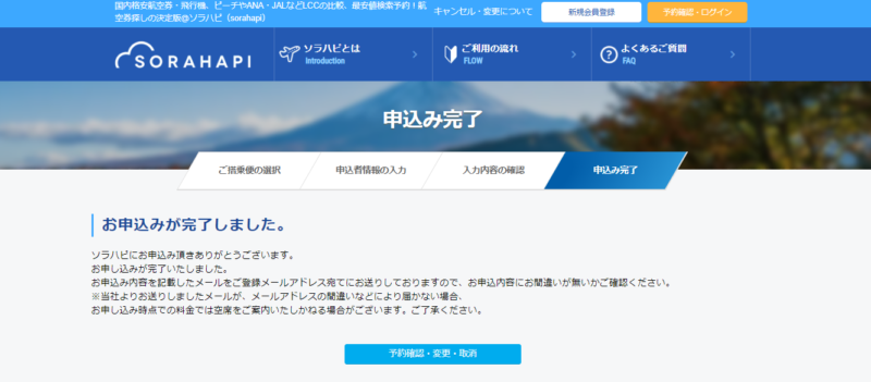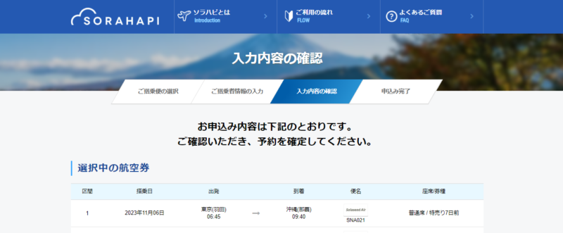 ソラハピで国内航空券を購入し、
